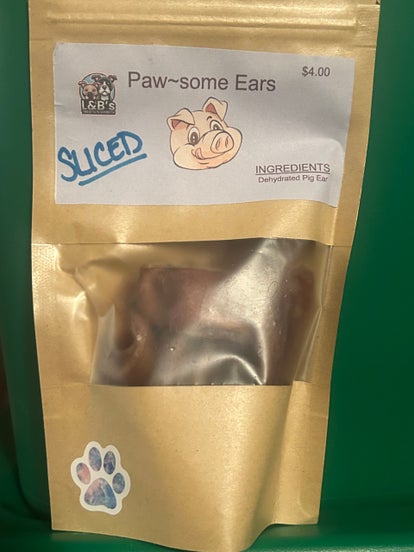 Our pig ears sliced up into strips for smaller dogs to enjoy on the goodness