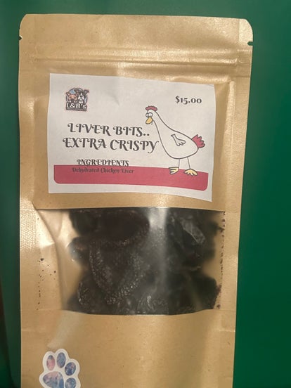 This is our very own poeanut butter cookies crumbled then baked to make the perfect treat for small or our senior dogs. This can also be used as a topper.